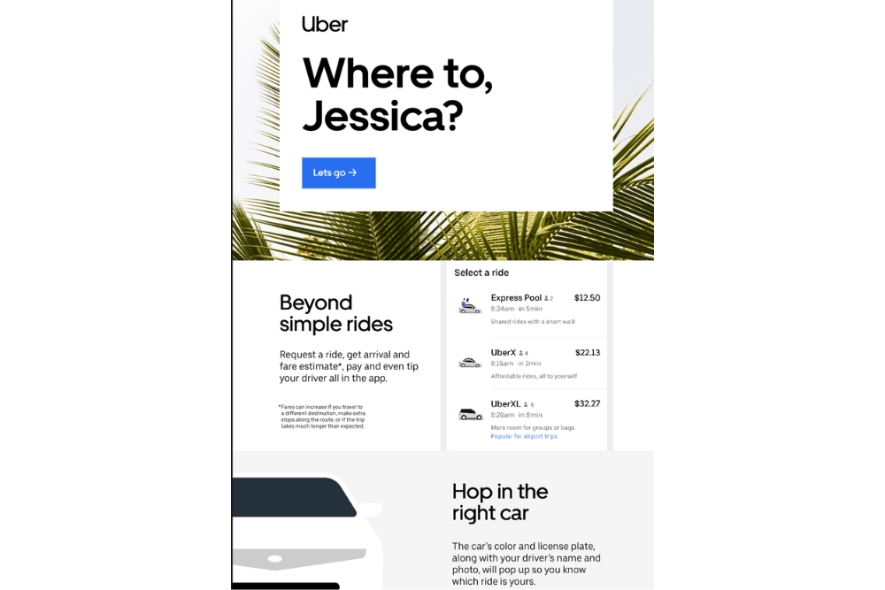 Uber consistently uses the same tone of voice through all its communications, such as social media, website, blog posts, emails, and advertisements.